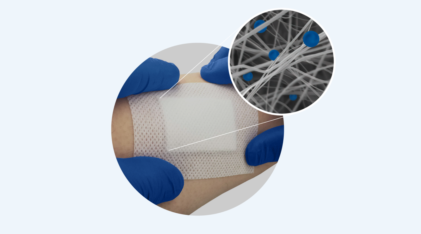Meie antibakteriaalne tehnoloogia on uus ja mitu korda tõhusam kui traditsiooniline hõbe (kuldstandard antibakteriaalses haavaravis). Meie lahendus leevendab haavainfektsioonide probleemi.