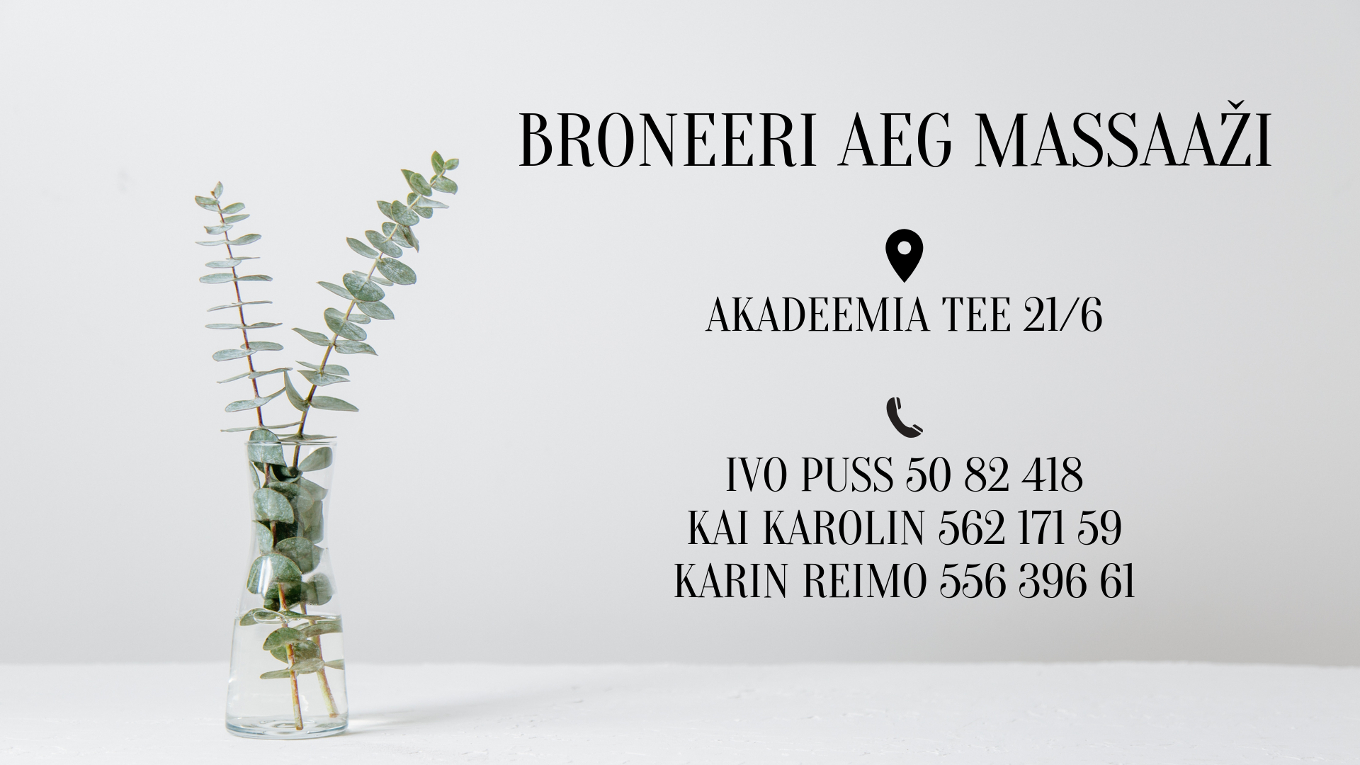 - Karin Reimo – classic massage (evenings and weekends).
