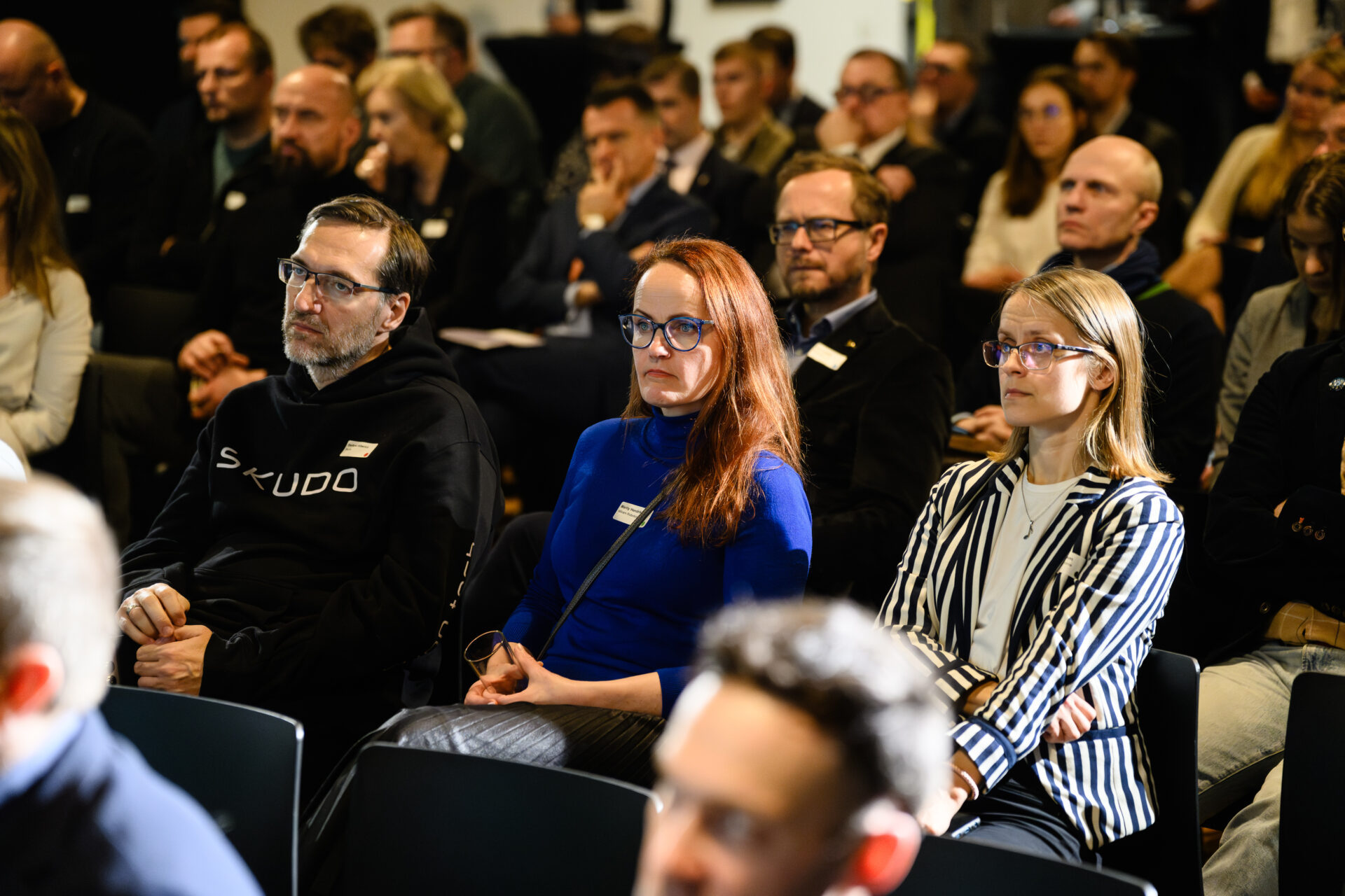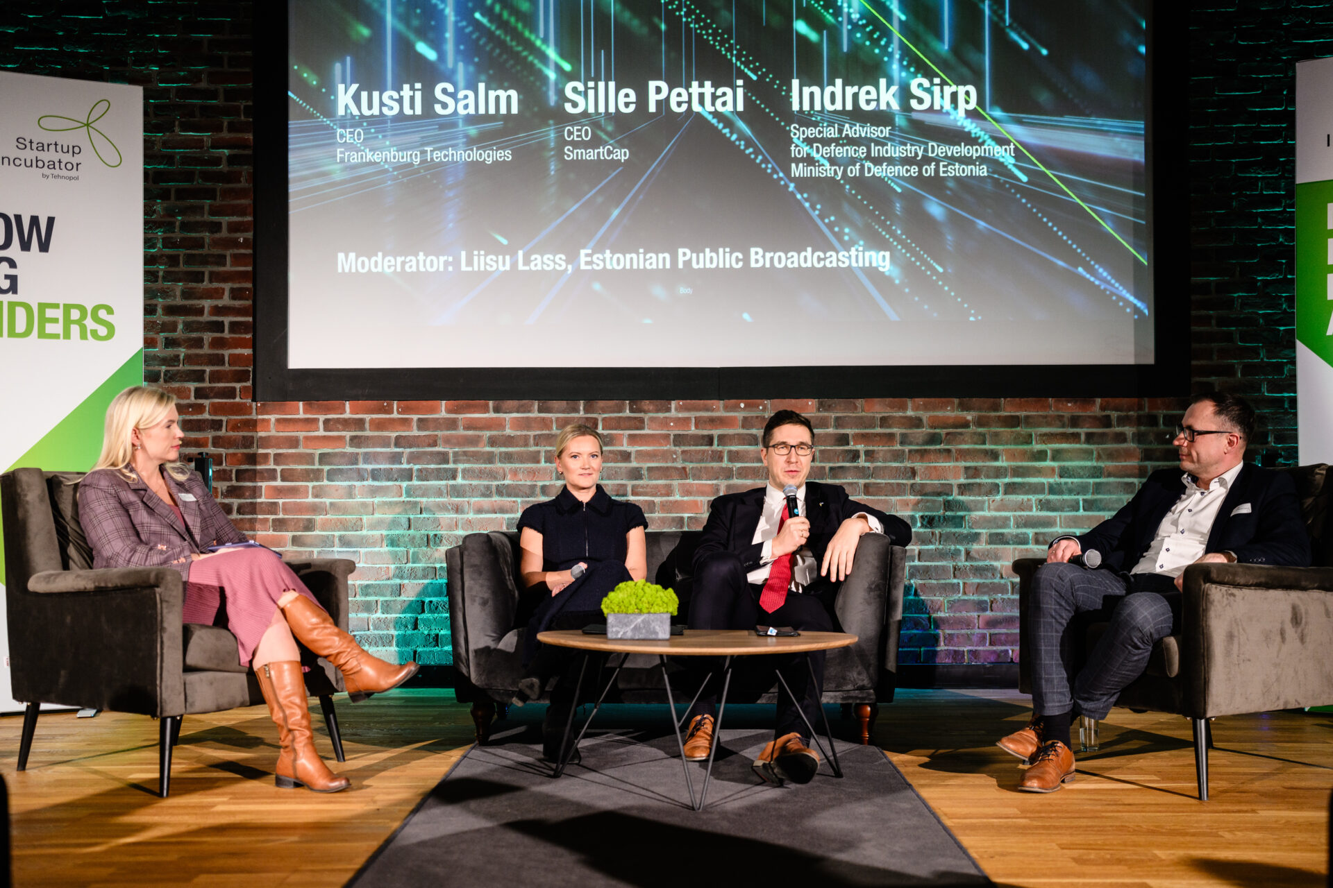 The official part of the evening ended with a discussion of funding, needs, and testing in the defence sector by a panel comprised of CEO of Frankenburg Technologies Kusti Salm, CEO of SmartCap Sille Pettai, and Special Advisor for Defence Industry Development at the Ministry of Defence of Estonia Indrek Sirp. The discussion was chaired by Liisu Lass.