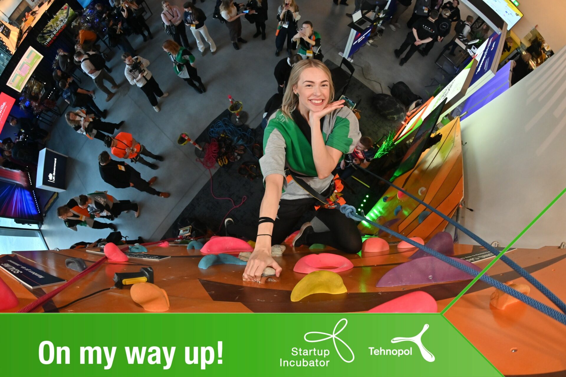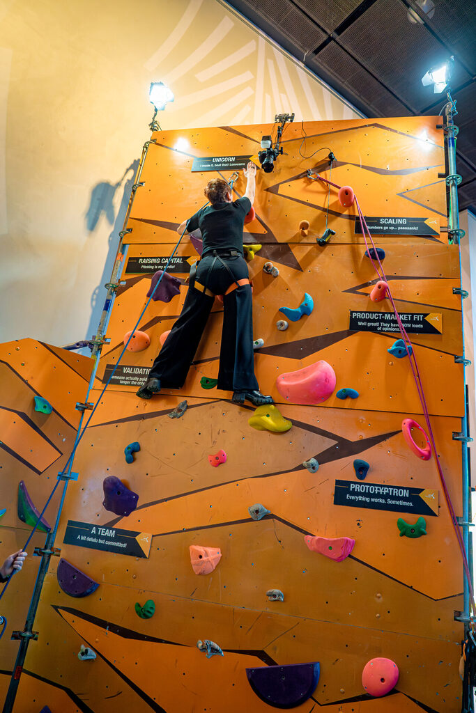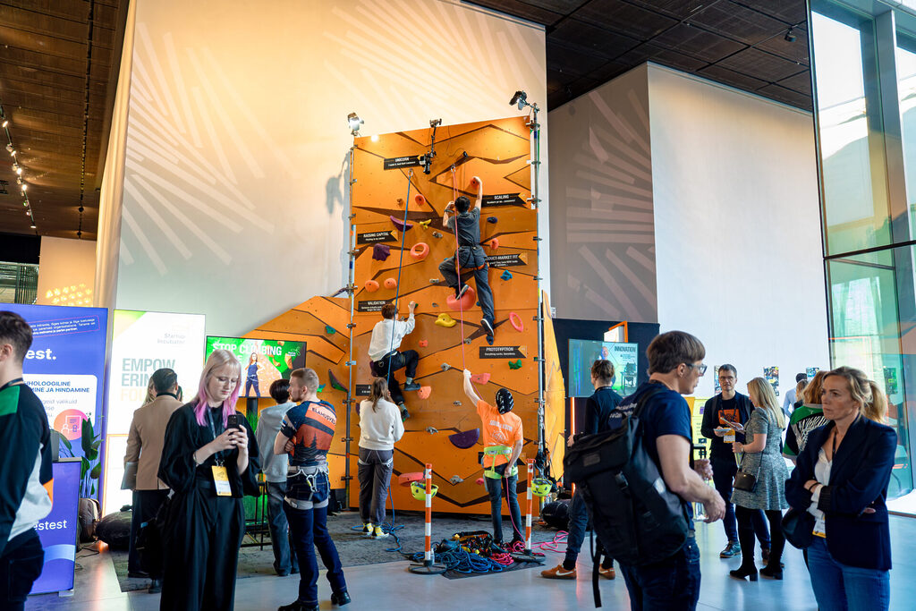 Lisaks kõigile kõrvalüritustele ja põhiprogrammi panustamisele oli Tehnopolil ka vinge boks koos ronimisseinaga. Miks? Tegelikult väga lihtne ja loogiline: ettevõtte ehitamine on nagu ülesmäge ronimine – vahel on kergemad lõigud, vahel tuleb ette päriselt raskeid kohti. Meie boksis sai selle mõtte sõna otseses mõttes läbi teha: ronimisseinal panid end proovile nii iduettevõtete praegused kui tulevased asutajad, meie mentorid ning koostööpartnerid ja kõik teised heas mõttes hulljulged sTARTUp Day külastajad.